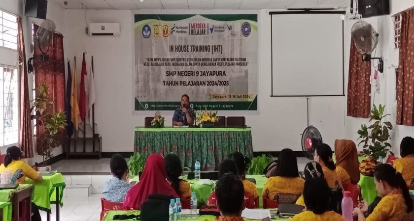 SMP Negeri 9 jayapura_Pada tanggal 18-19 Juli 2024 bertempat di Aula sekolah, sekolah SMP Negeri 9 Jayapura telah melaksanakan kegiatan In-House Training (IHT) yang dihadiri oleh seluruh staf pengajar dan tenaga kependidikan. Acara ini bertujuan untuk meningkatkan kompetensi dan profesionalisme guru serta tenaga kependidikan dalam rangka mempersiapkan tahun ajaran baru dan menyikapi perubahan kurikulum yang diterapkan oleh Kementerian Pendidikan, Kebudayaan, Riset, dan Teknologi (Kemendikbudristek).